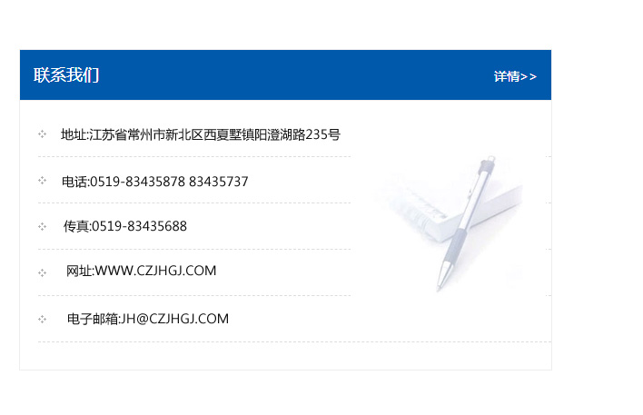 傳真:0519-83435688    郵編:213135    網址:WWW.czjhgj_com.qhqzqw.com    電子郵箱:JH@czjhgj_com.qhqzqw.com